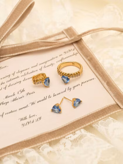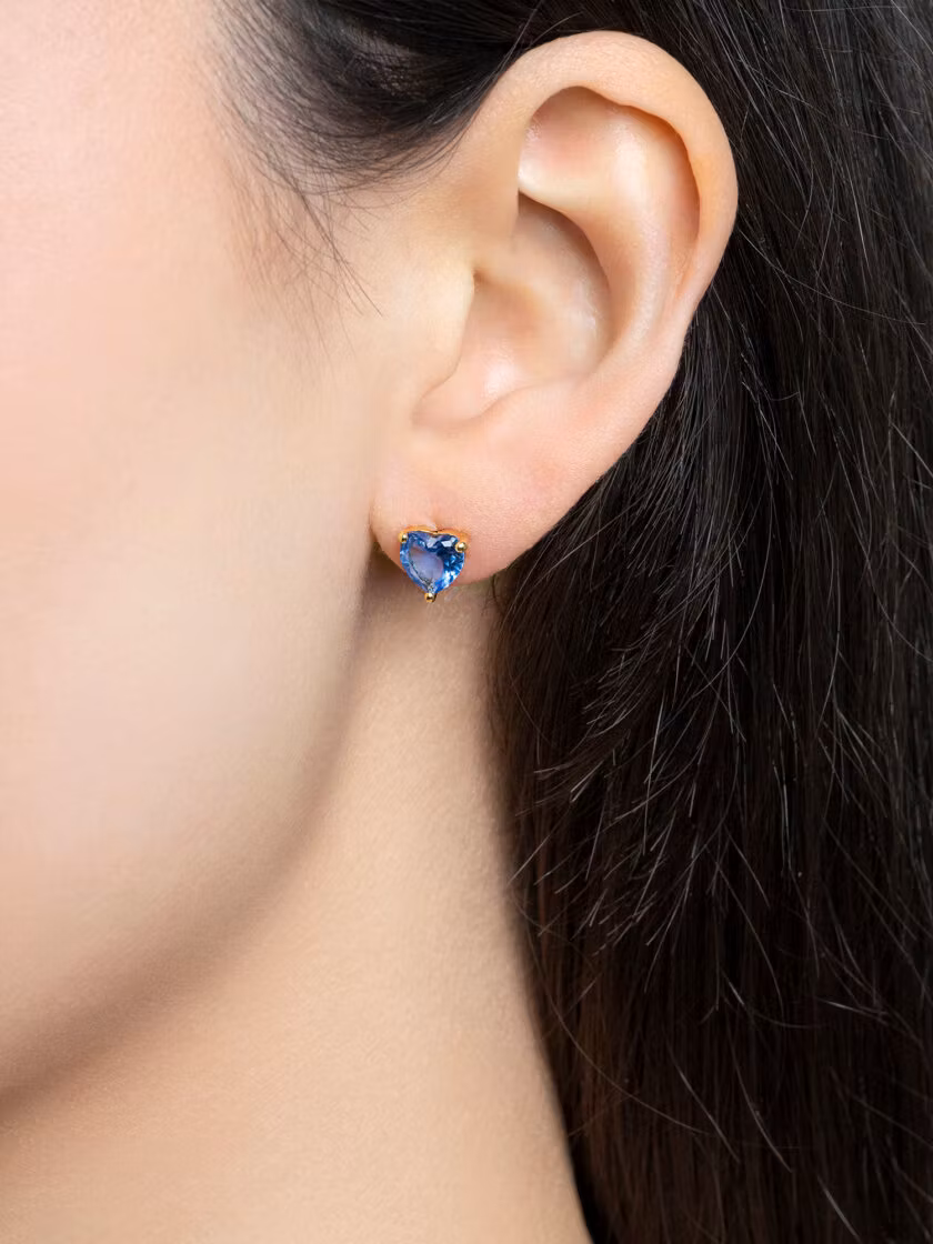 A timeless symbol of love! Venus-örhängena balanserar romantik med edge genom sin hjärtformade design och blåa sten.