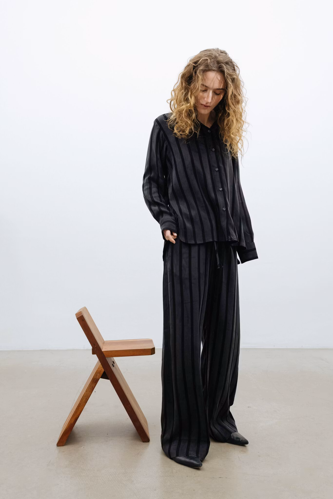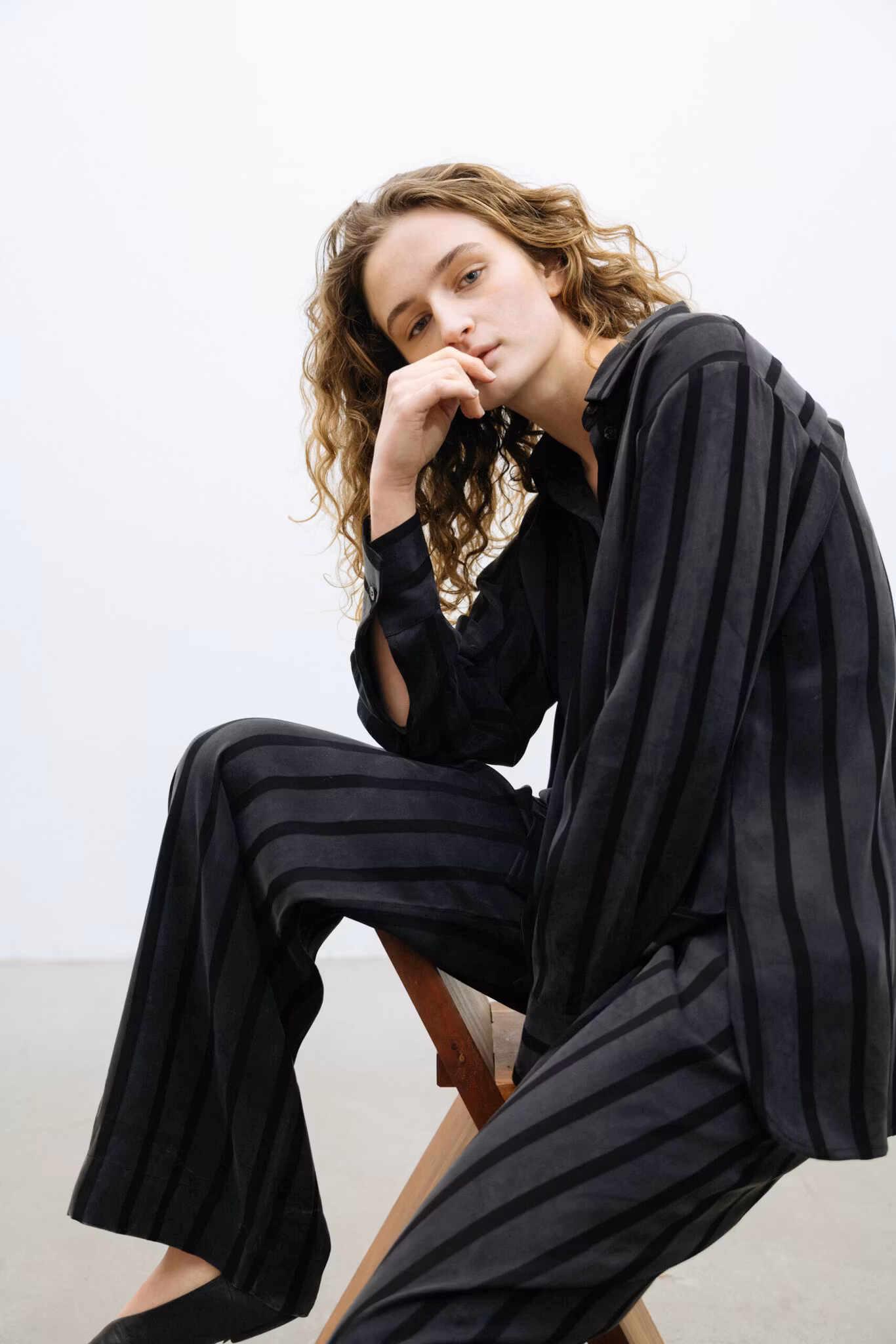 Vacant Pant är ett par vida, stilrena byxor med ultimat komfort och avslappnad stil. Byxorna har dolda sidofickor och en justerbar midja med dragsko. De är tillverkade av en blandning av viskos och lyocell och känns silkeslena, andas och är mjuka mot huden. Oavsett om du letar efter bekväma vardagsbyxor eller eleganta byxor för en utekväll är Vacant Pants ett mångsidigt val för alla tillfällen. För en komplett look kan du kombinera dessa byxor med Daily Shirt Black Stripe– en tidlös ensemble som passar lika bra på dagen som på kvällen.