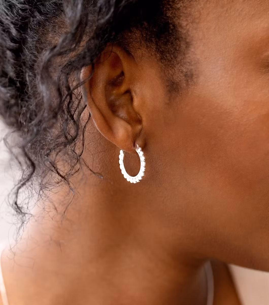 Små, vackert mönstrade runda örhängen i sterling silver.