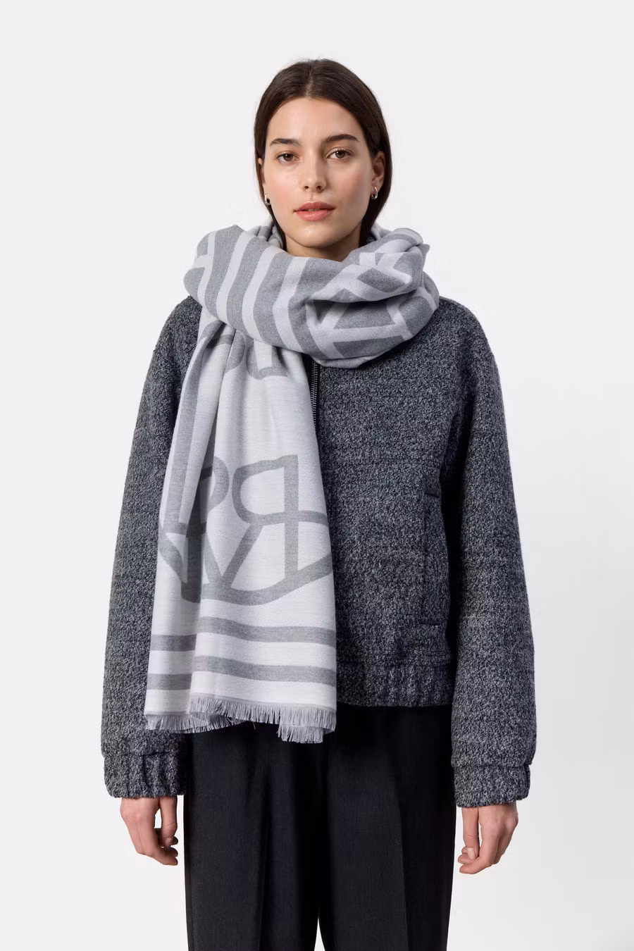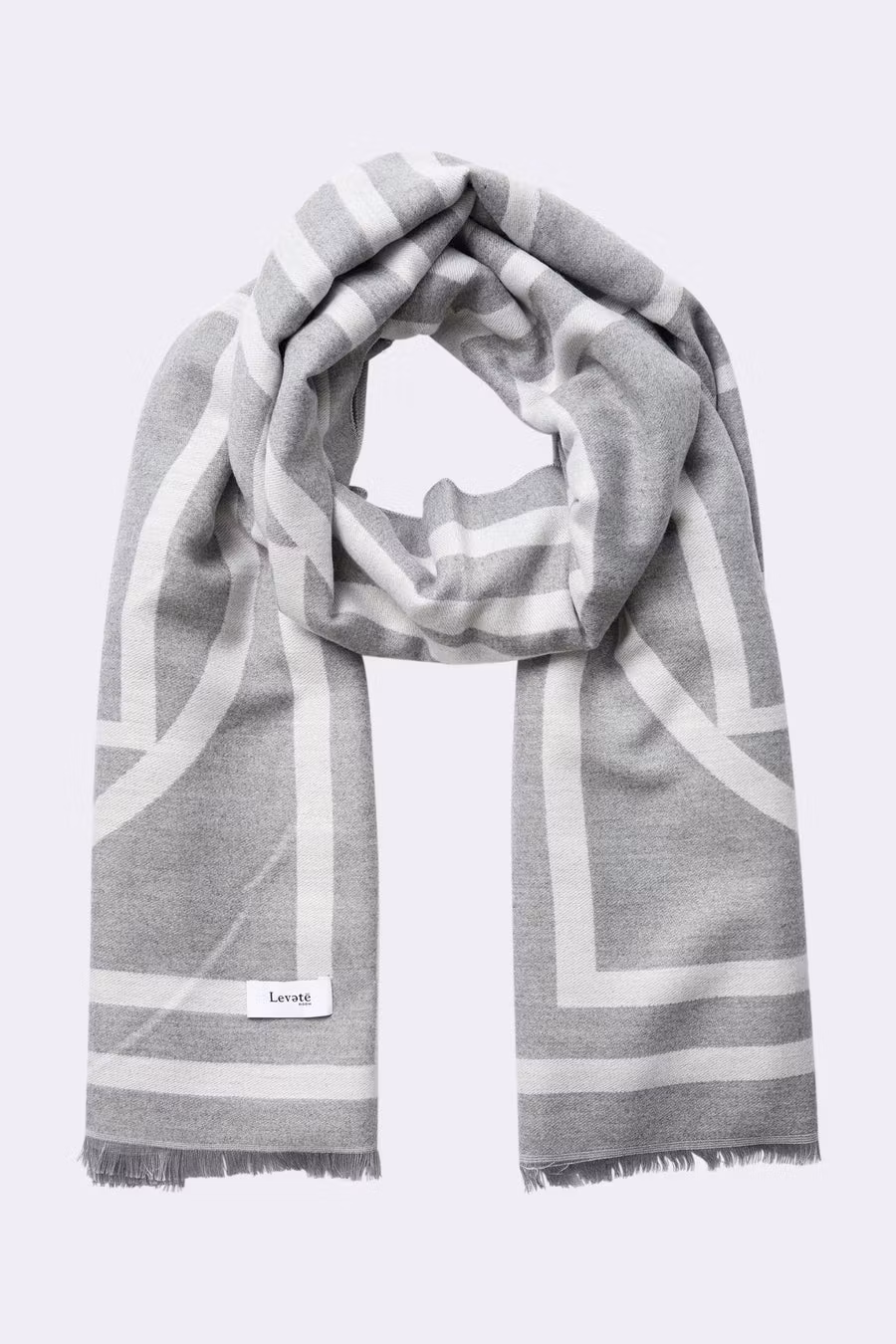 En stilfull och varm halsduk tillverkad av en mjuk viskos- och ullblandning. Halsduken har Levete Rooms monogram och kommer i en härlig grå färg.