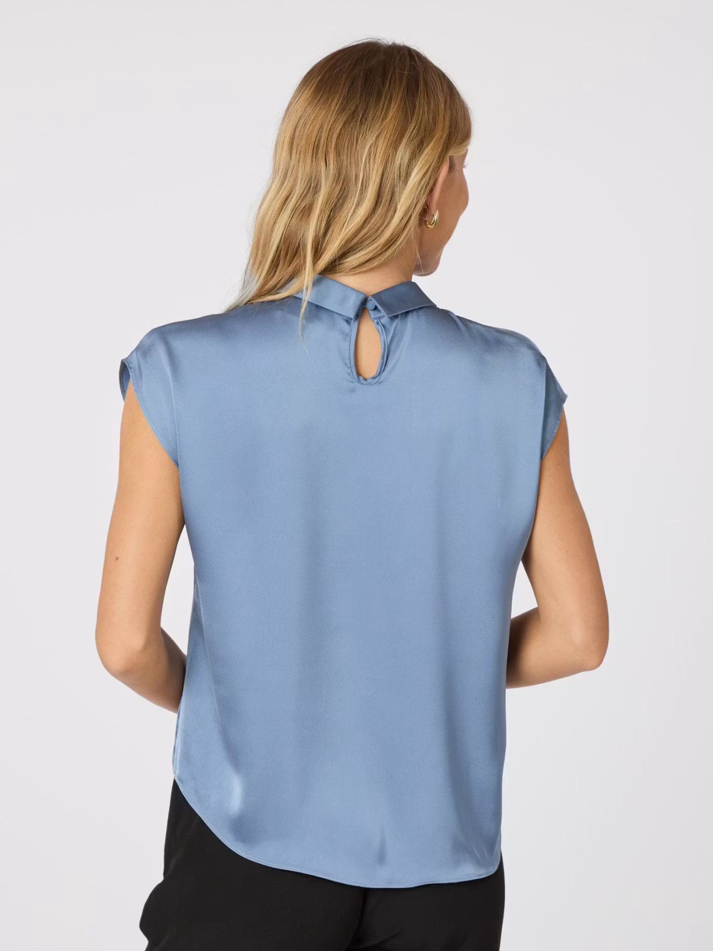 Feminin blus med vacker knytdetalj framtill, tillverkad i ett mjukt satinmaterial. Blusen har en avslappnad passform, korta ärmar och är en perfekt topp som både kan kläs upp eller ned beroende på tillfälle.