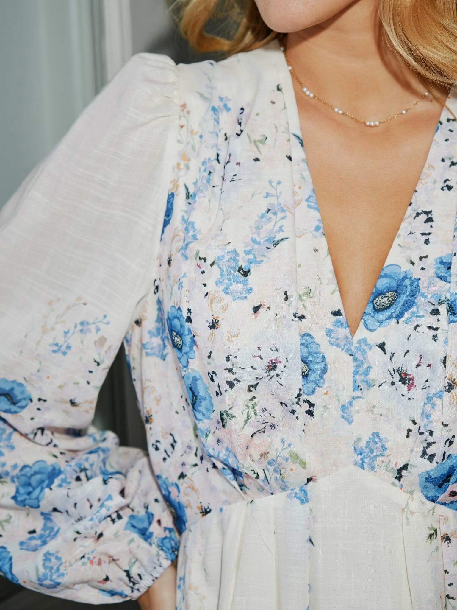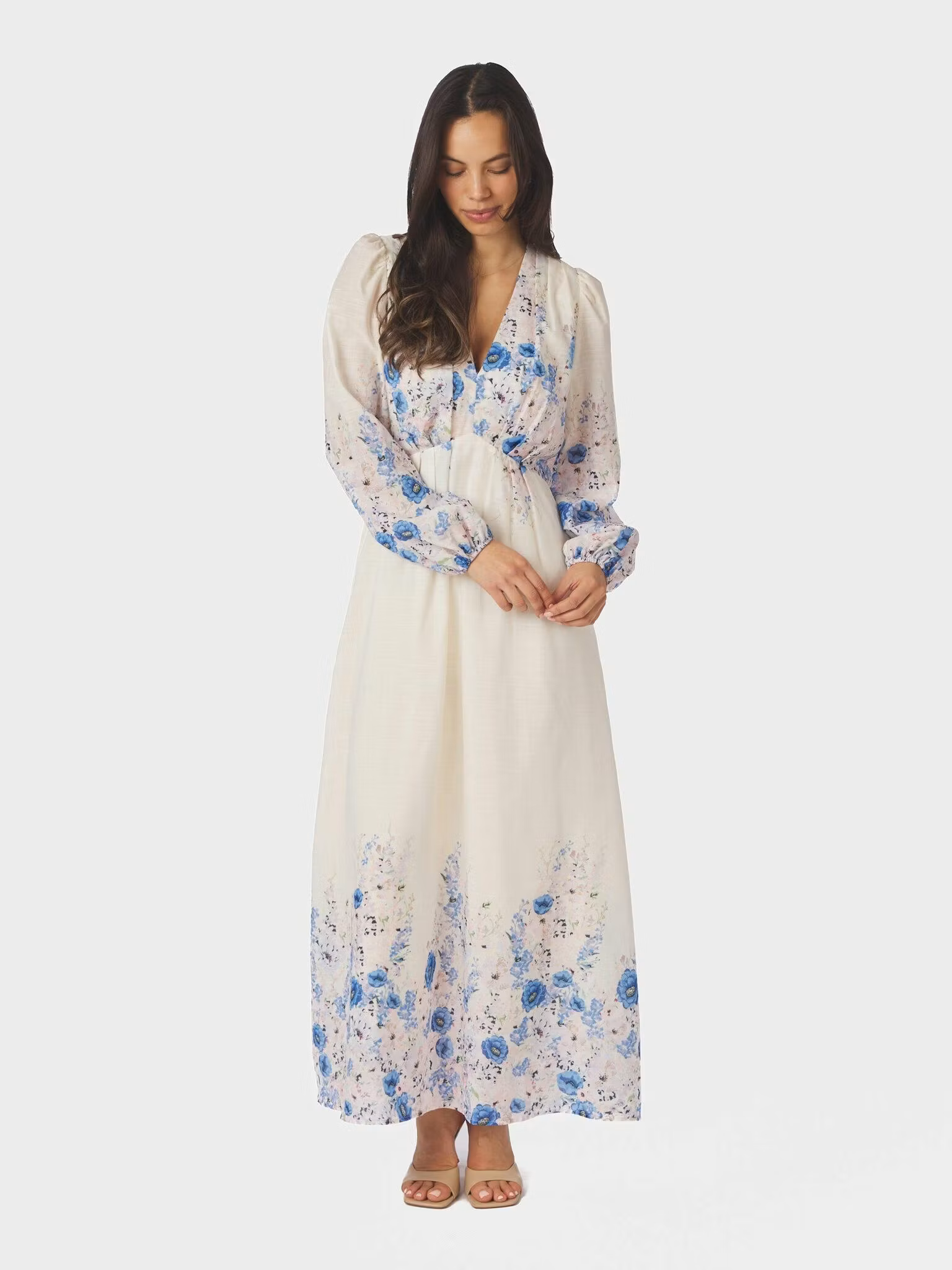 Vacker maxiklänning från Neo Noir med avslappnad och feminin passform. Klänningen har långa ärmar och är V-ringad.