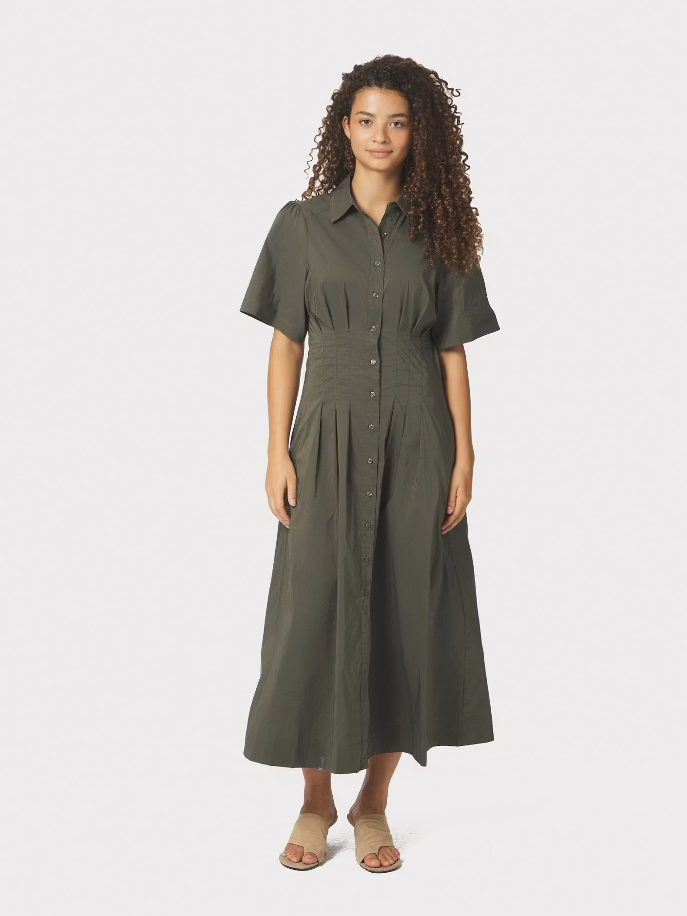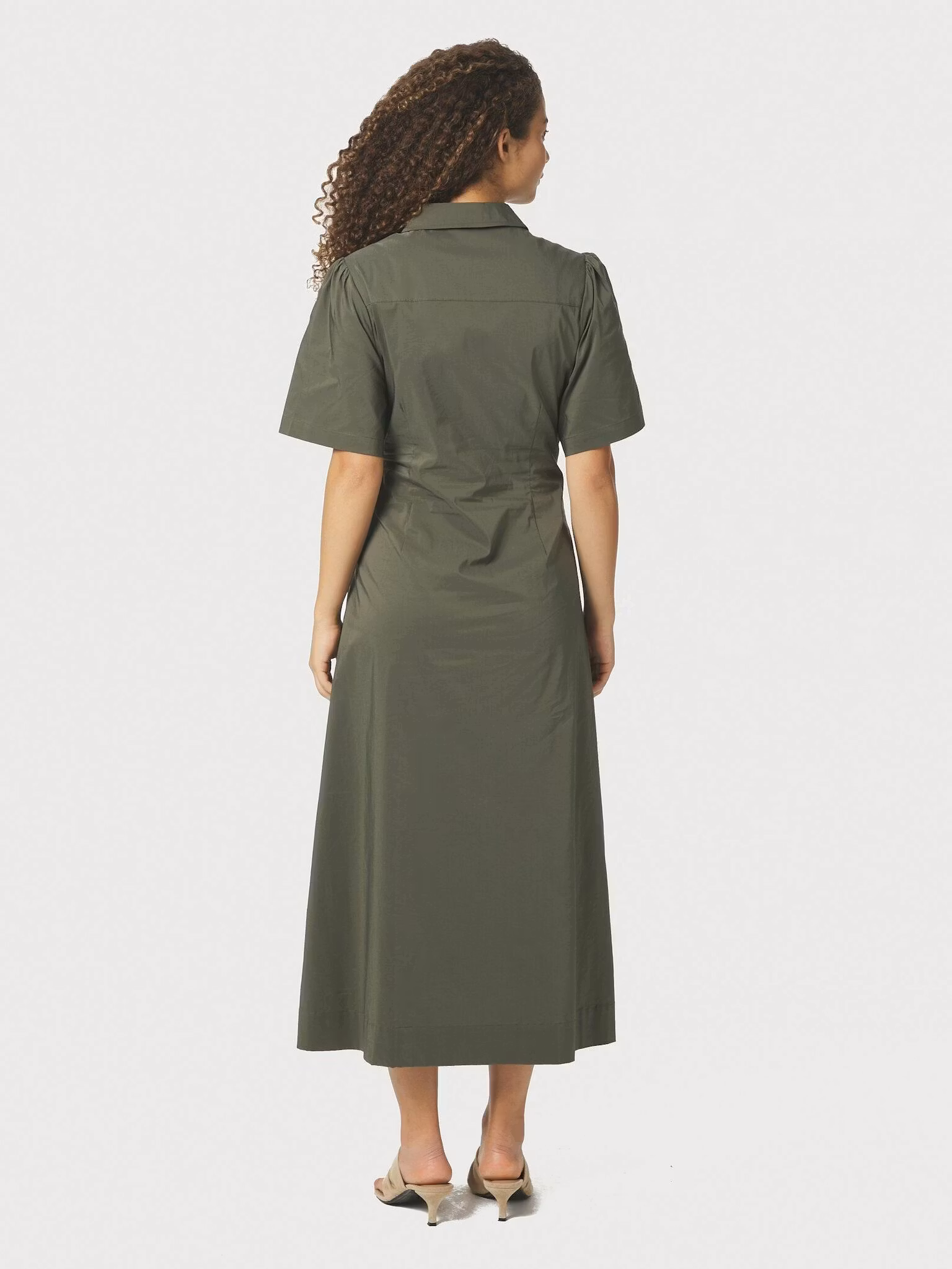 Stilren klänning med skjortkrage och knappslå framtill. Klänningen har en intagen midja som ger klänningen en fin passform.
