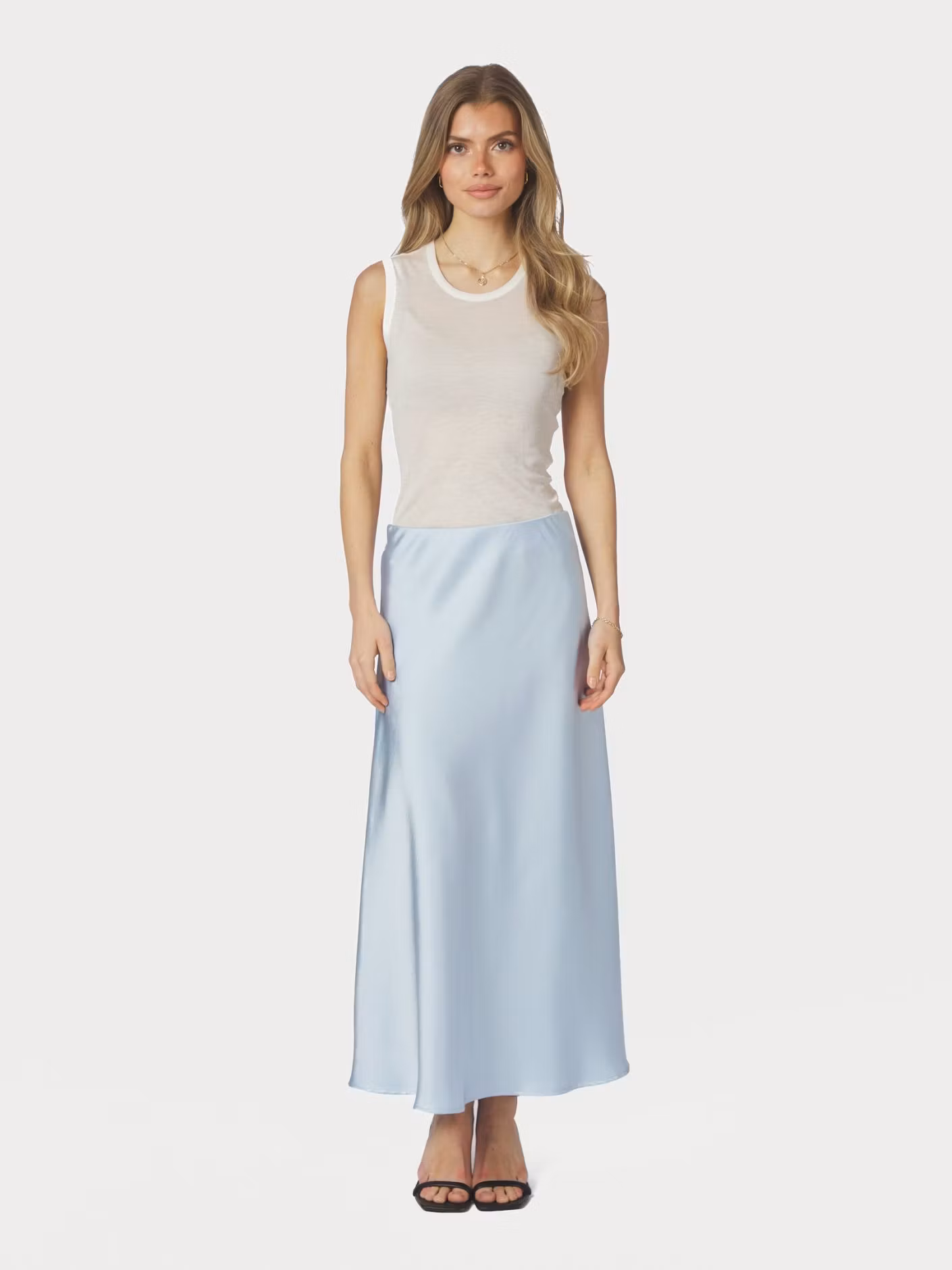 Midikjol med resår på insidan i midjan och en snygg passform. Kjolen kommer i en fin och slät satäng.