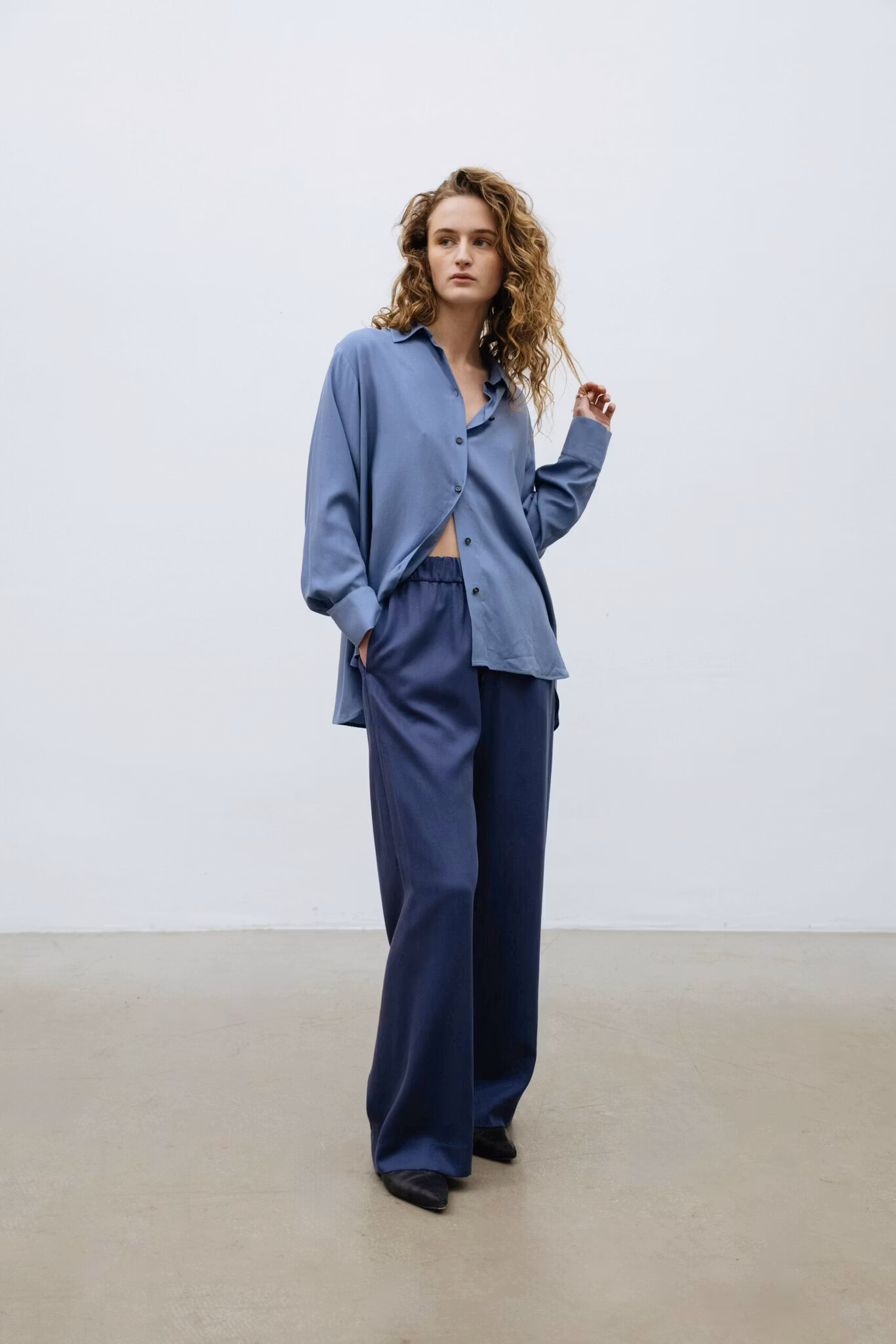 Daily Shirt i Pale Indigo är ett tidlös basplagg och ett modernt alternativ till den klassiska skjortan, designad för en stilren och avslappnad look. Den är tillverkad i mjukt lyocellmaterial som ger ett vackert fall samtidigt som den ger en silkeslen känsla mot huden.