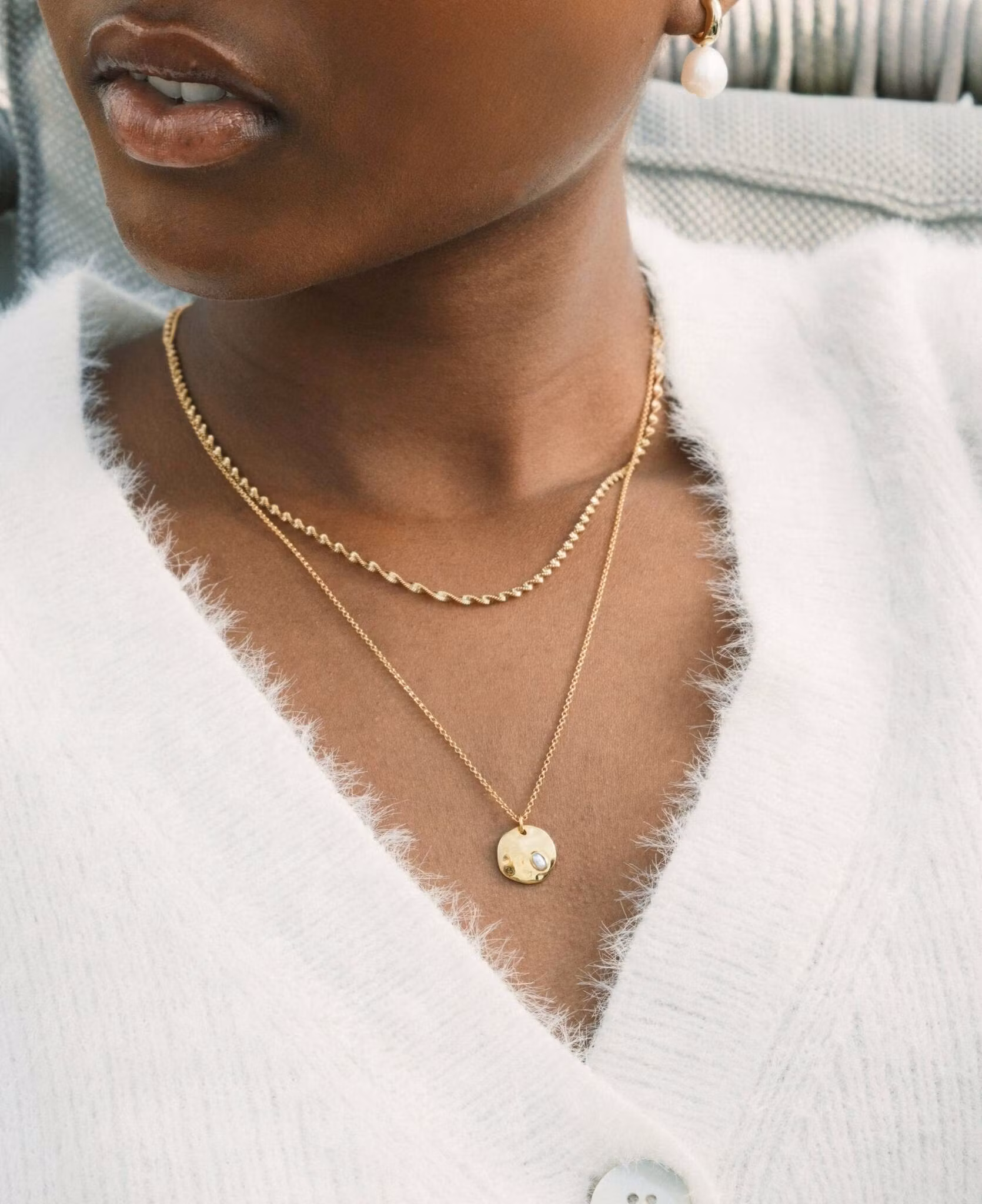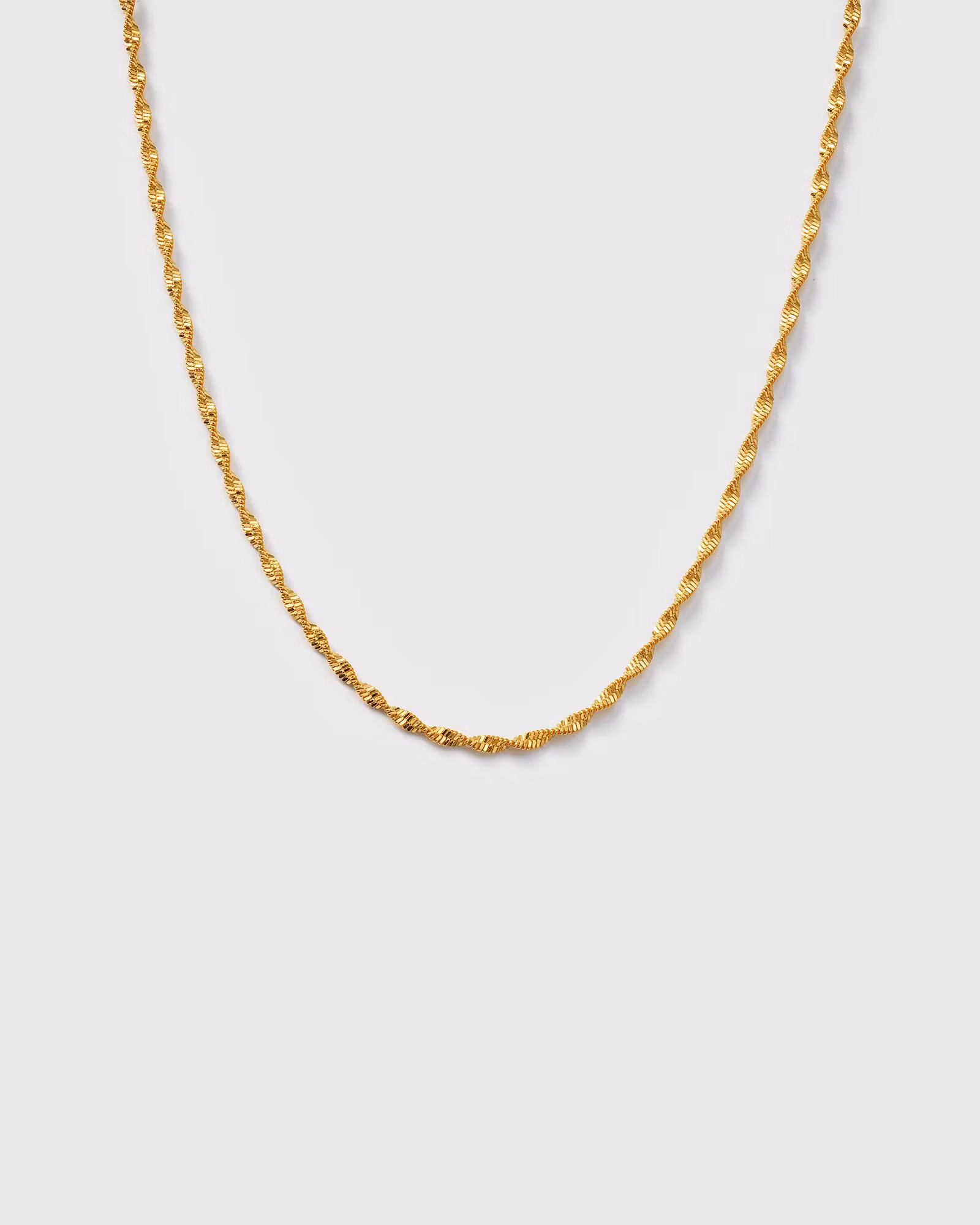 Tunt och tvistat kort halsband, tillverkat i 100% återvunnet sterlingsilver med 18K guldplätering. Fint att både bära ensamt eller i kombination med andra smycken.