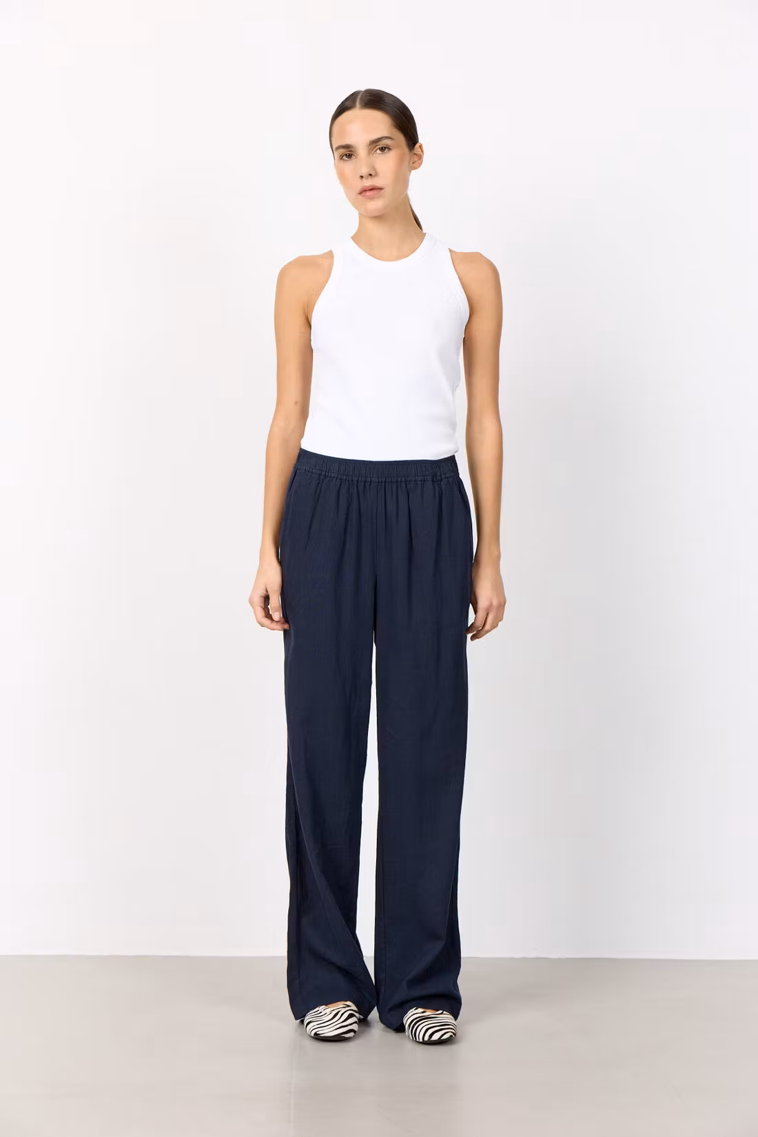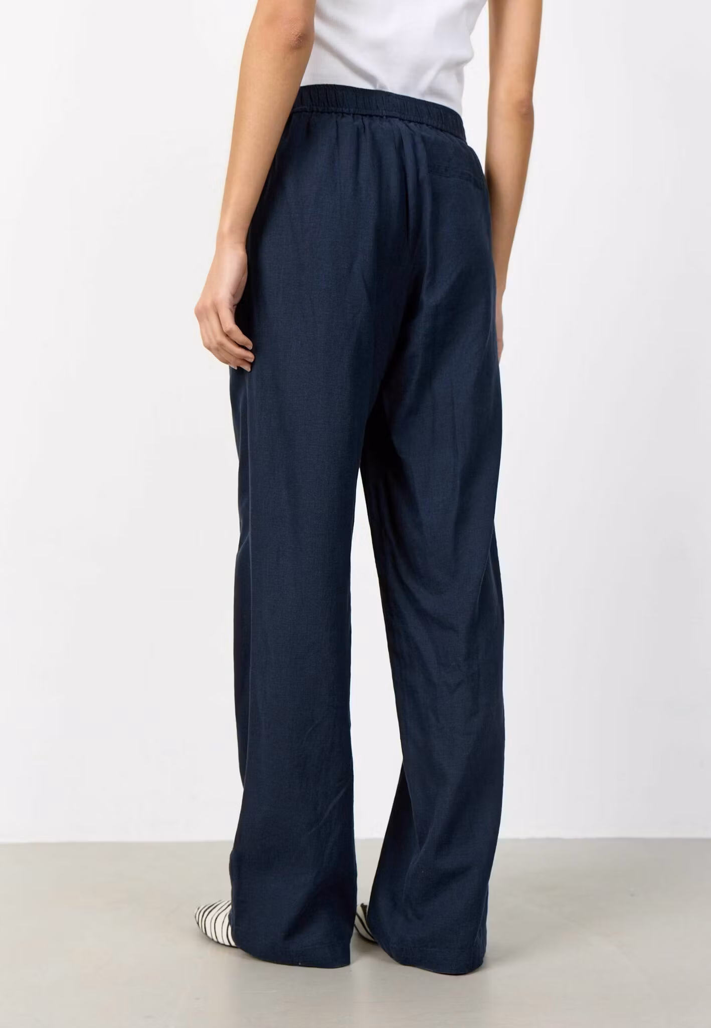 Härlig linnebyxa tillverkad av 55% linne och 45% bomull. Byxorna har en elastisk midja och raka ben.