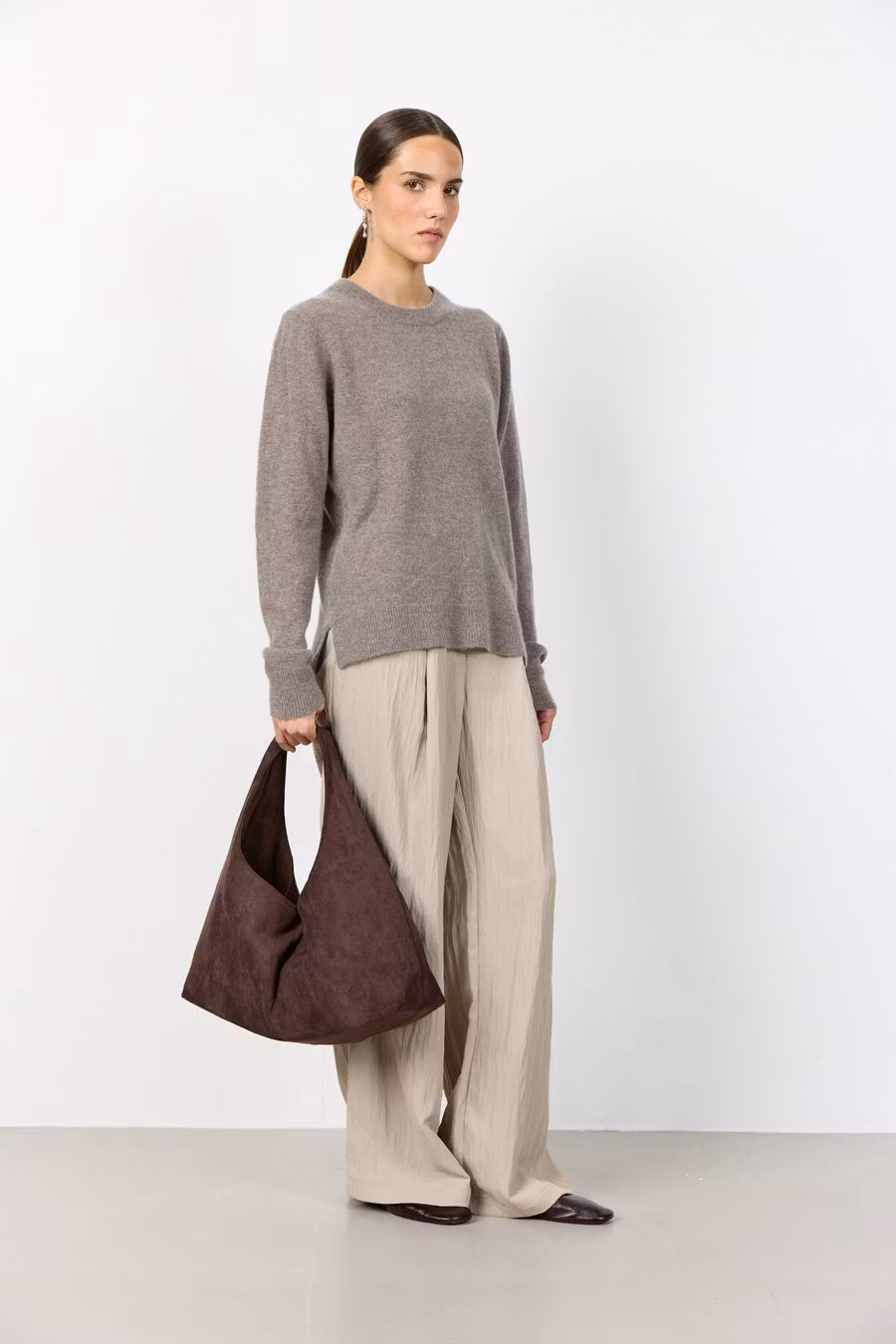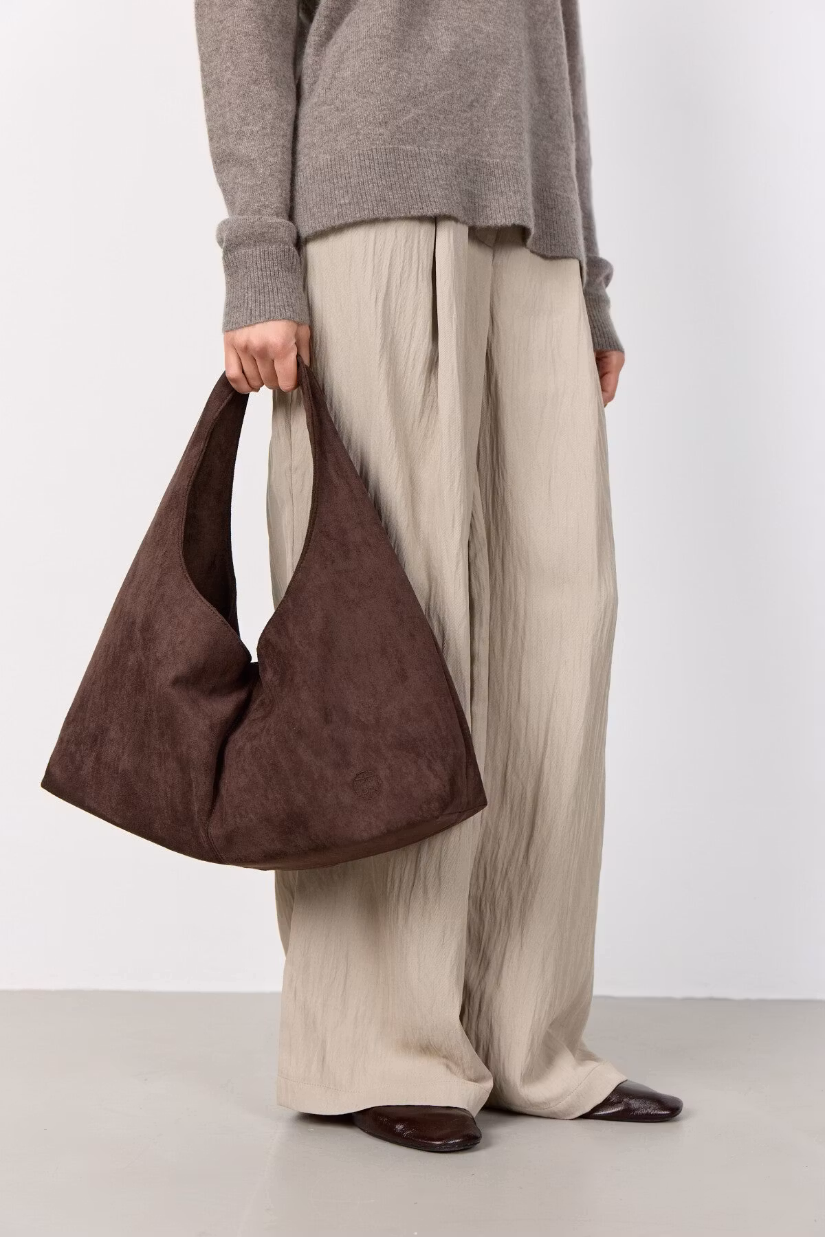 En klassisk mockaväska tillverkad av 100% polyuretan. Väskan har en rymlig interiör med en texturerad yta och ett slitstarkt handtag som gör den lätt att bära - både i handen och på axeln. Inuti finns ett fack med dragkedja som rymmer det allra viktigaste.