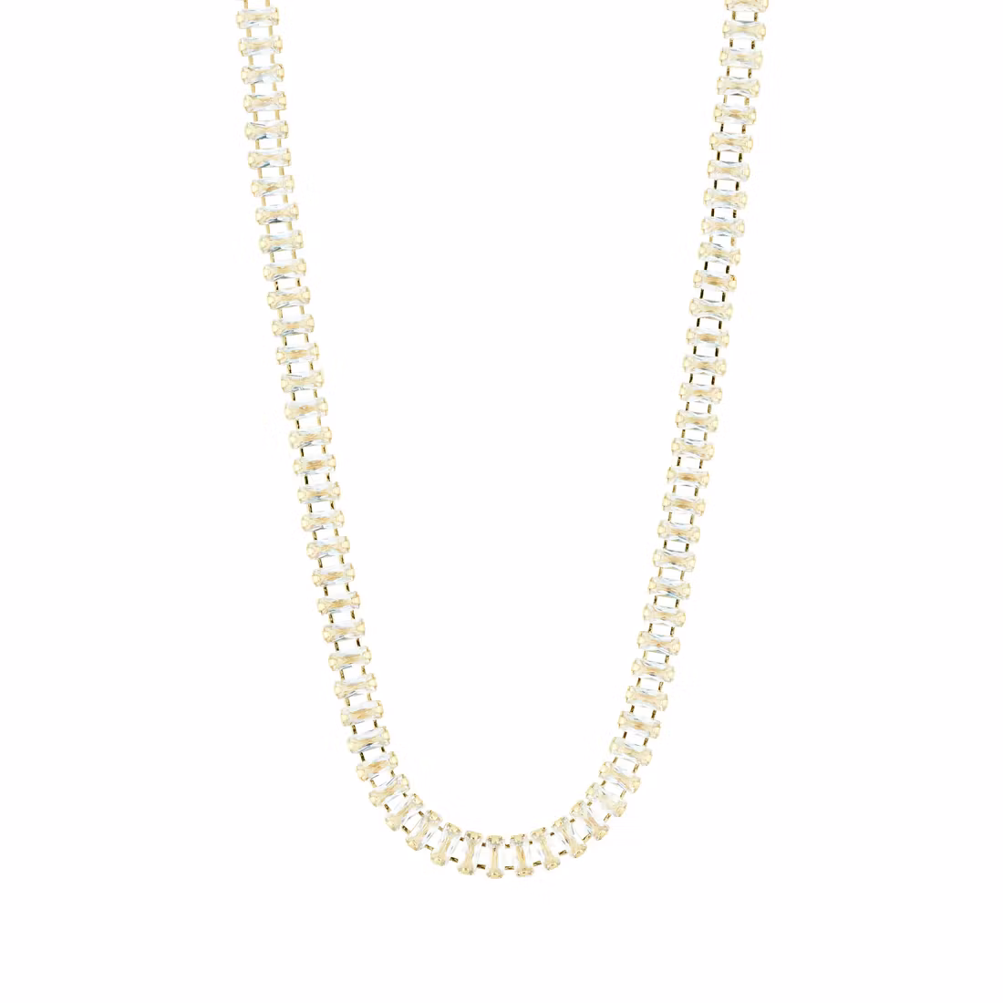 Dream big! Ett guldpläterat halsband som utstrålar glam och tidlöshet. Halsbandet är en baguettekedja med rader av avlånga zirkoner och har en 9 cm förlängningskedja som gör att du kan justera det till rätt längd.