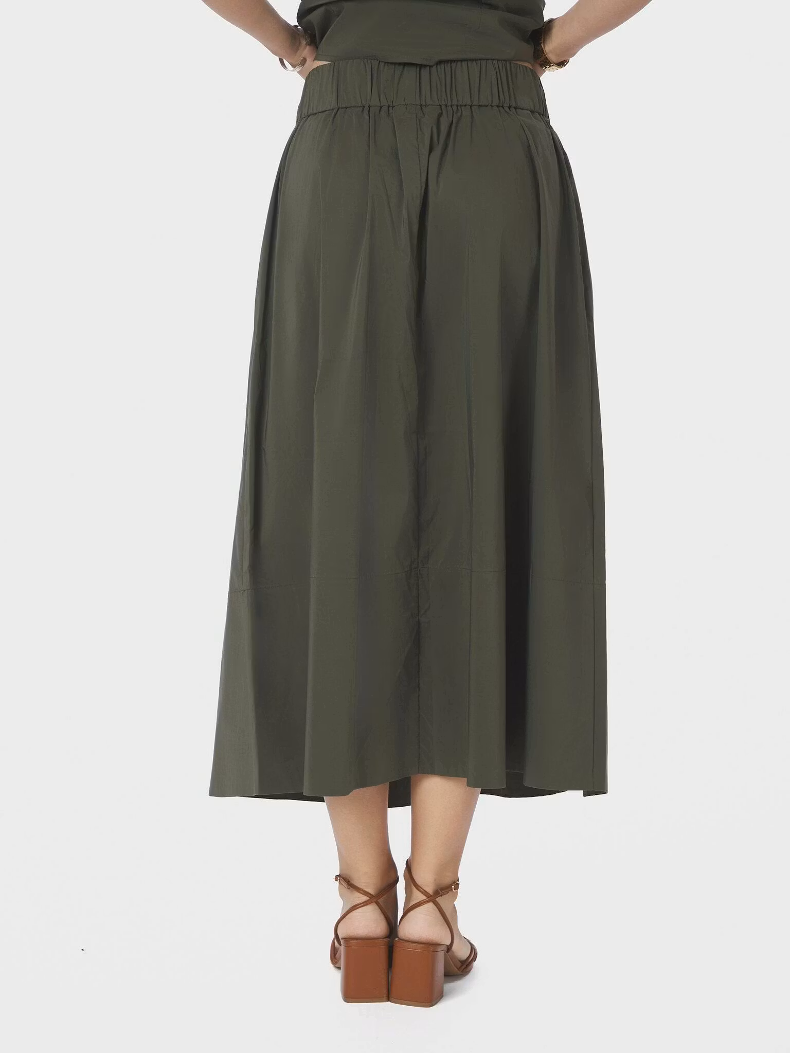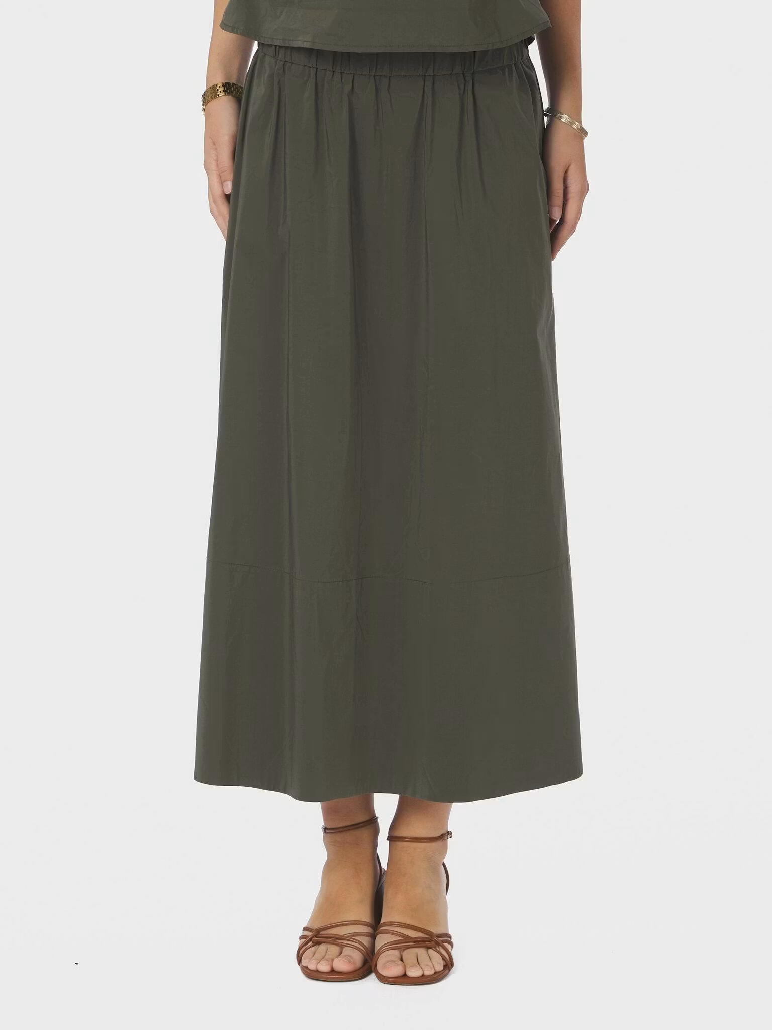 Midilång kjol i mjuk bomullspoplin, med en hög midja och fickor fram.
