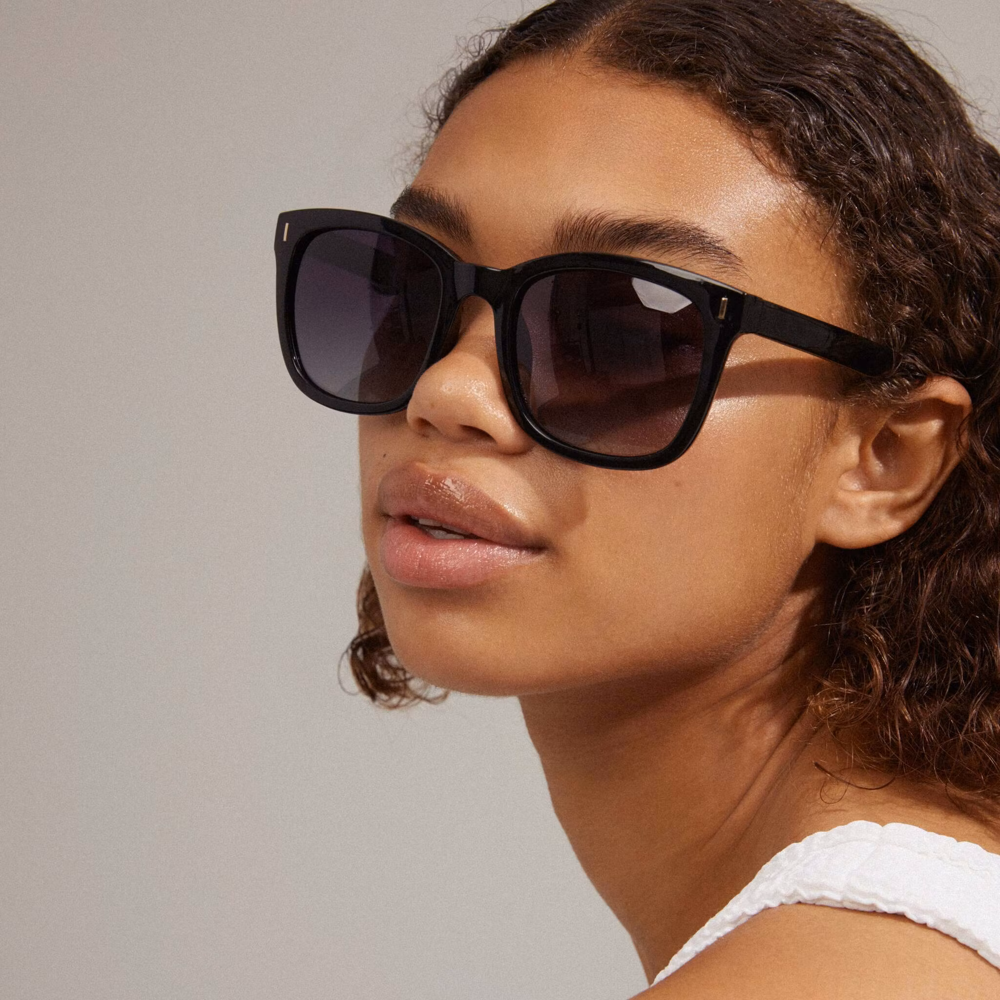 Svarta solglasögon tillverkade av återvunnen plast från havet. Alla Pilgrims solglasögon har UVA/UVB-skydd, är CE-godkända och har UV400-skyddande glas.